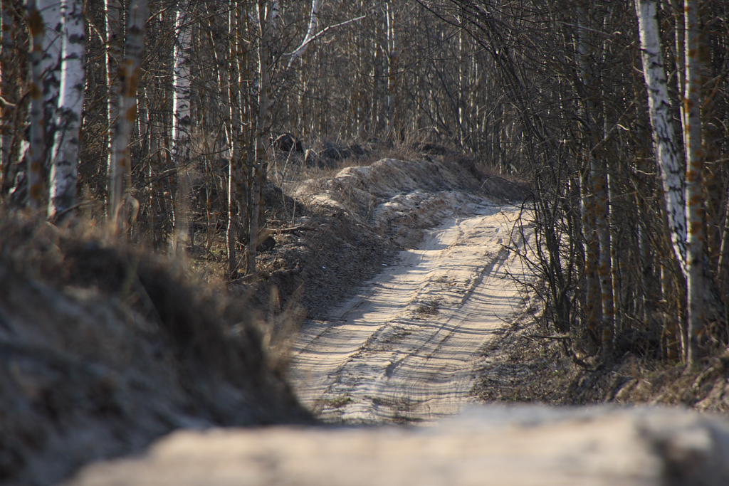 через некоторое время выбрались на другую песчаную просеку - еще более изрытую тракторами и бульдозерами рассекающими там (вдоль нее шла Лэп, сразу вспомнил поездку двухгодичной давности когда ездили с Ведмедом, Женком2004, в самую жару... когда тоже бродили по ней пешком, а потом все-таки выбрались к маклоку... но в каком месте это было - неясно да и не помогло бы нам в данной ситуации) движение все также продолжалось прямо, подчиняясь позыву той бабки., тем временем песок сменялся глубоким снегом, немелкими лужами, замершими на 3 см, таким образом, эти лужи превращаясь в ловушки не давали по себе проехать полностью не провалившись.