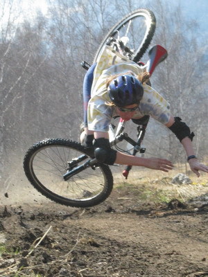 вилочка такого не проглатила и пришлось совершать полет через руль... мораль в том что после этого я вспомнил расказ Олега о его падение на скорости 50-60км\ч... короче никогда не знаешь что из под машины может вынырнуть