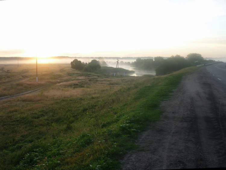 Стартовали в восьмом часу от Армады в Юго-Западном. Недж с Агатой, плюс трое нас: ВованББ, Радлер и я. Ехали быстро, но долго. На выезде из области за превышение скорости на 50 км/ч Неджа сфотографировали на камеру воронежские ГАИшники и долго заглядывали в глаза, моля о спонсорстве. Сердце Неджа не дрогнуло, был составлен протокол, поехали дальше. Уже в темноте очутились в Курске у заправки ТНК, где встретились с Олегом и получили карточки. В Тазово у церкви собрали велы и стартовали. Ночью ехалось хорошо. Светила Луна.. В ямах у прудов обдавало холодом. При приближении встречных автомобилистов переключались на ближний свет, чем их немало озадачивали – объект с тремя мощными, вихляющимися фонарями, несинхронно переключающийся на ближний свет, трудно идентифицировался. В деревнях быстрый пролет нашей группы при включенных фарах в шорохе шин мимо девиц, возвращавшихся с танцев, вызывал у них нечто вроде оргазма со стонами. Выехали на щигровскую трассу, проехали Щигры, повернули на Тим. Потихоньку начало плющить – выспаться перед заездом не удалось никому. Бодрили спуски в ямы с холодным воздухом и следовавшие за ними тягуны. Пахло то травами, то болотом, то липовым цветом. В одном месте пахнуло свежеобработанным гербицидами полем, да так, что чуть не выбило из седла. В Тиме на КП мы с Вованом напали на кофейный автомат и немного взбодрились. После Тима горизонт уже засветлел, в Мантурово, которое мы проскочили без остановки, если не считать собаку, бросившуюся Радлеру под колеса и заставившую его резко оттормозиться, были уже предрассветные сумерки. А в Субботино, где мы остановились у колонки с лучшей водой, было уже совсем светло. В туманных лугах у Солнцево показалось солнце. Там встретили курского рандонье, который уже накатался и ехал домой. До Обояни было 41 км и это расстояние моя психика еще воспринимала, однако вдруг, ни с того ни с сего, заболело колено, да так, что я начал подумывать о сходе с дистанции.