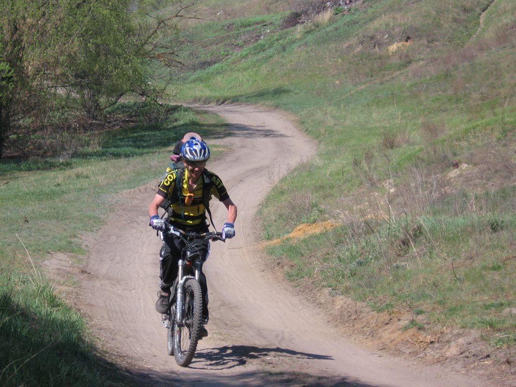 Имелись и головокружительные спуски по меловой сыпучке, по узенькой тропинке вдоль обрыва, где приходилось спускать велы весом под 40 кг и более... (со снарягой) аж троим (для страховки), иначе, если с тропы сорваться, то... хана всему и всем, кто рядом.