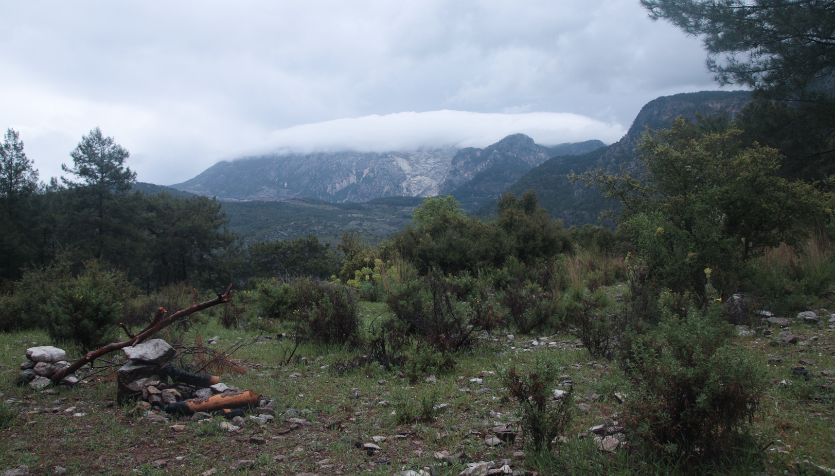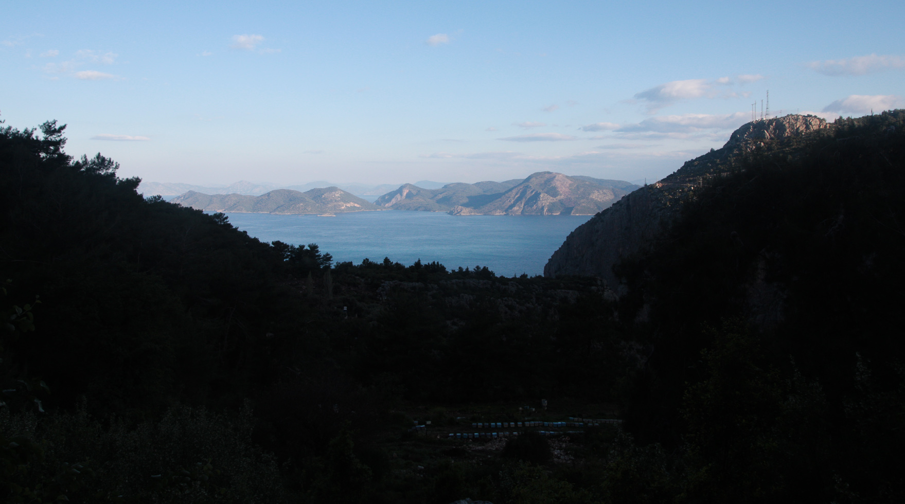 Пообщался с каким то немцем в шлепках, он сказал, что от Fethiye до сюда дошел всего за 3 дня (я вряд ли повторю его рекорд), на мой вопрос где он еще ходил в последнее время, сначала с трудом мог сообразить, что ответить, а потом выдал список мест со всего земного шара. Так же он не рекомендовал идти кусок по тропе вокруг долины Патары, мол узкая тропинка, со всех сторон колючие кусты, да и виды не особо. Я и сам смотрел на этот участок на карте до этого и сомневался в его эстетической ценности. Обменялись координатами, он предложил писать если окажусь в Германии, а я если он в России.