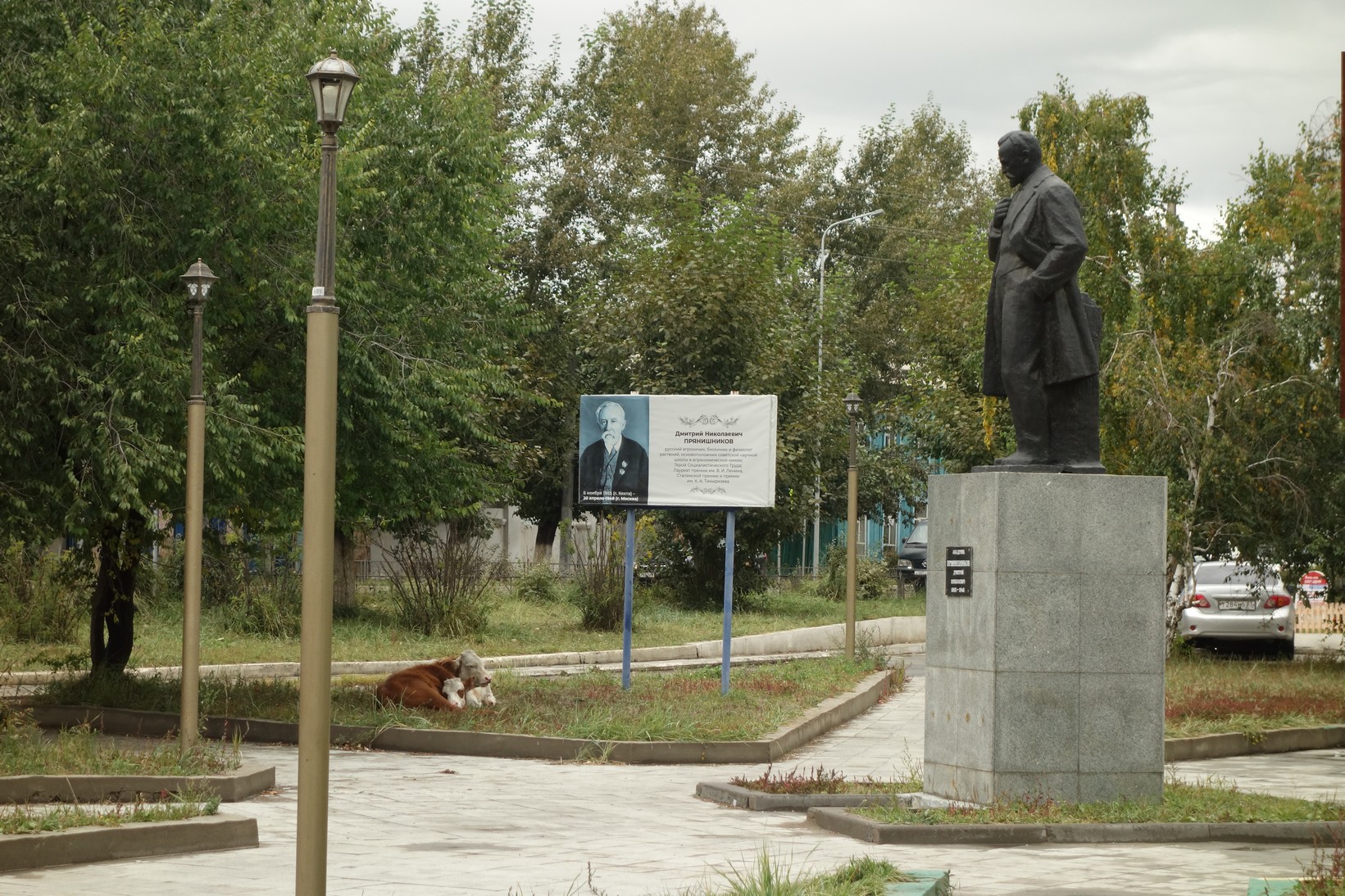- Ещё Кяхта - родина академика Прянишникова. Поскольку он был академик по с/х теме, памятник охраняется коровами. Это как бы сквер в центре города)