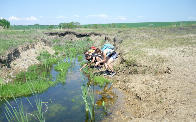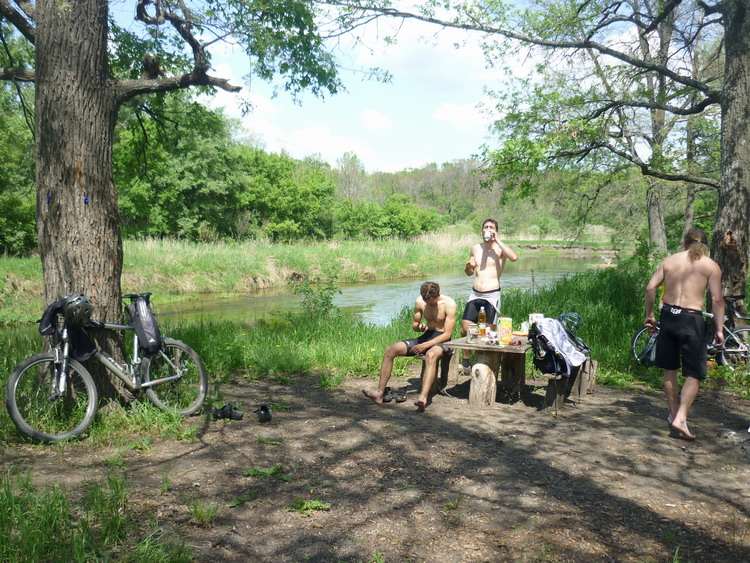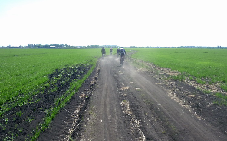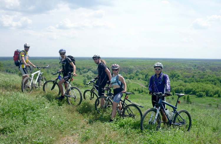 На этот раз терпилы собрались у Линии на Остужева, чтобы предпринять бросок на Битюг, а заодно посмотреть на Шип-Курган на обратном пути. Вот кто это был: Rangifer, FreeMan, Radler, San, Zheny и я. Пятисотый не приехал. Маршрут на Битюг повторял поездку двух и трехлетней давности. Через Новую Усмань выехали в луга у Рыкани, потом через Рыкань аствальдом до Тимирязево и коротким грунтовым куском в Михайловку, где разорили местные запасы мороженого в магазине. От Михайловки, выехав на борисоглебскую трассу, проехали по ней 10 км и свернули на долгожданные грунты. Бедной Гале на ригиде пришлось нелегко. Дорога носила следы тракторных покрышек и сильно отдавала в руль. Я наслаждался преимуществами полноподвеса. Впереди лежал Большой Мартын. Путь к нему преграждали величественные долины двух русских рек. Первая река называлась Смычок. На крутом берегу Смычка экспедиция остановилась. Проверить состояние воды доверили знатному ихтиофилу Жени. Получив добро, терпилы радостно заплескались в прозрачных струях. После подъема в ковылях под блеянье овец из расположенной рядом кошары, дорога некоторое время сохраняла горизонтальность, а затем опять загнулась в долину Икорца. На другой стороне долины весело громоздился Большой Мартын. Судя по рельефу его улиц, покрытых черноземом, засохшем в замысловатых позах, осенью и весной жители оказываются отрезанными от большой земли. От Мартына до Березовки предстояло опять ехать полями. Скучновато, но тут Жени торкнуло от смычковской водицы. А вскоре и Березовка показалась. Осталось проехать аствальдом совсем немного до Шишовки и начать спуск в долину Битюга, густо заросшую Хреновским Бором. Как и в прошлом году проезд через лес к Вислому кордону оказался перекрыт шлангбаумом с мужиком и бабой. Мужик был склонен скорее нас пропустить, но баба устроила припадок показной бдительности. Удалось договориться, чтобы пропустили только к реке, чуть дальше шлангбаума. Приехали и начали отдыхать.