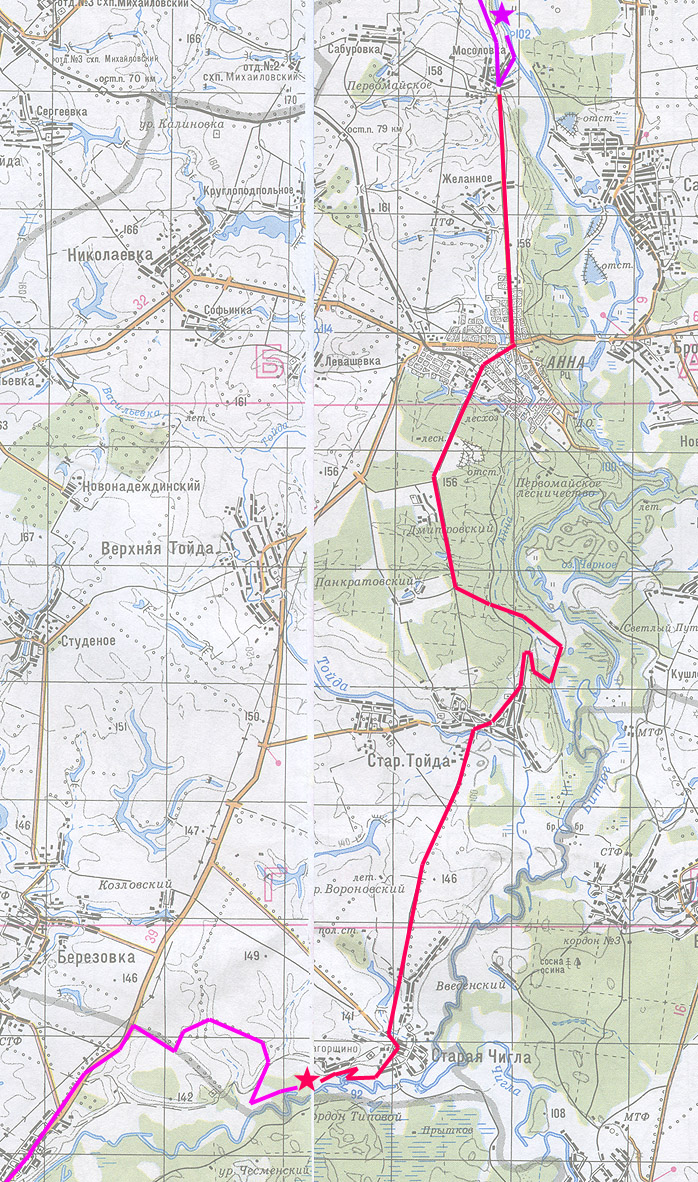 Карта области манит прямой дорогой от Анны до Старой Тойды через лес. Поддаемся на искушение: