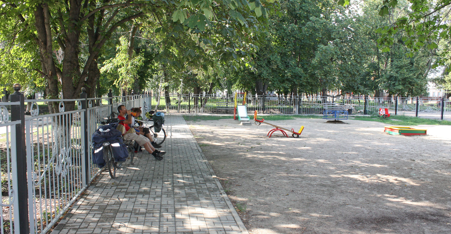 въезжаем в Бобров. Заезжаем на детскую площадку посмотреть на молодых мамаш: