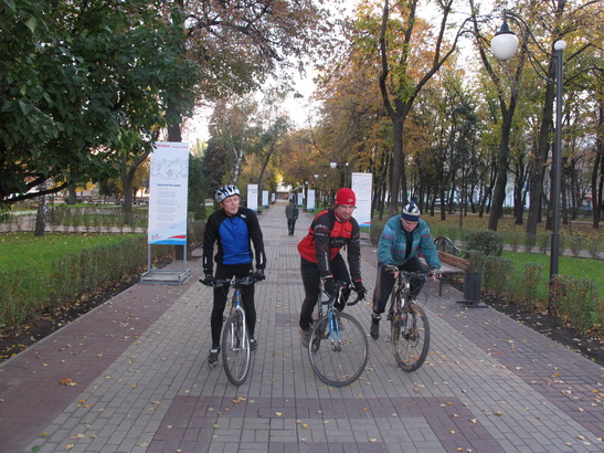 Маршрут изменили и сократили значительно, до 140 км - холодно было, обманули нас про солнышко. Я все время отставал, но ребята меня ждали, пока окончательно не сдох на подъезде к городу. Финишировал на площади в гордом одиночестве и с проколотым колесом.