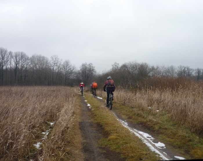 грязепотоками, но, на удивление было проезжабельно. Так добрались до Пути-к-Себе и до рамонского моста. Лезть в заповедник не стали из за дефицита времени и из за наглядности велоследов на остатках снега, по которым бы нас быстро выкупили егеря. Я был непрочь ехать по просеке с кабелем до Тресвятского, но решив срезать увел всех с аствальдта слишком рано. Так что короткий кусок от Березки до Плотовского Кордона ехали долго, снегопесками и накрутили лишних километров пять. Ехалось тяжело, поэтому решили возвращаться на аствальдт. Сделали это на Плотовском кордоне. У реки решили перекусить. Тут к нам подплыл на каяке второй за сегодня интересный человек, да еще с форума, да еще из Лисок. Это был Fast, который готовился к завтрашнему закрытию водяного сезона. Здорово получилось! Побеседовали, полакомились халвой и вернулись в Отрожку, откуда я поехал вдоль ж.д. в направлении Обл ГИБДД, а все осталные вроде как на отроженские мосты. Не знаю доехали ли?