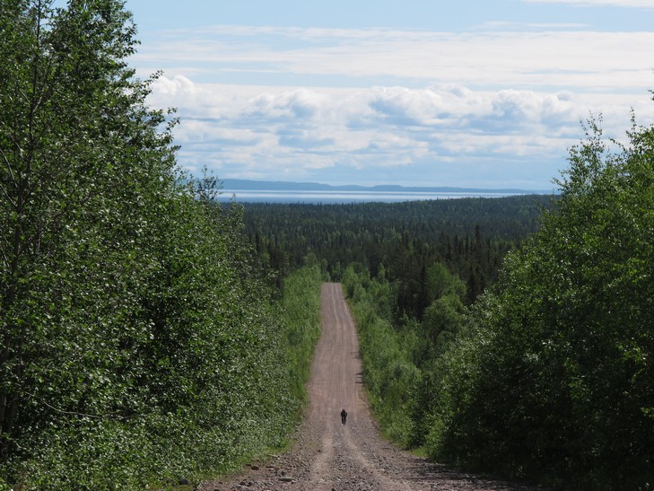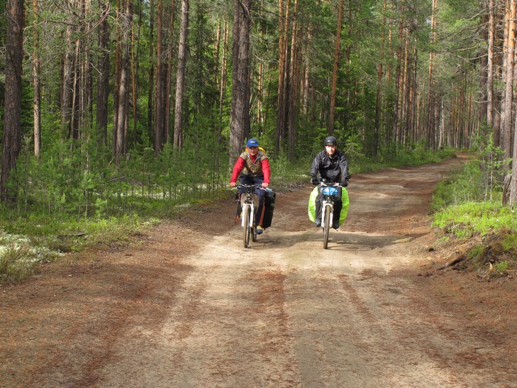 24.06. С утра въехали в Пяозерский, отметили это дарами цивилизации в магазине, заехали в дирекцию нацпарка, сообщили о пропаже.. Пяозерский - молодой поселок лесозаготовителей. Построен финнами и это заметно. Получили премию в виде 10 км асфальта, затем свернули на грейдер до Калевалы. Качество грейдера улучшилось, рельеф заметно сгладился, доехали до Калевалы без приключений. Там нашли живописную стоянку в стороне от поселка. Общий километраж за день подобрался к 100 км.