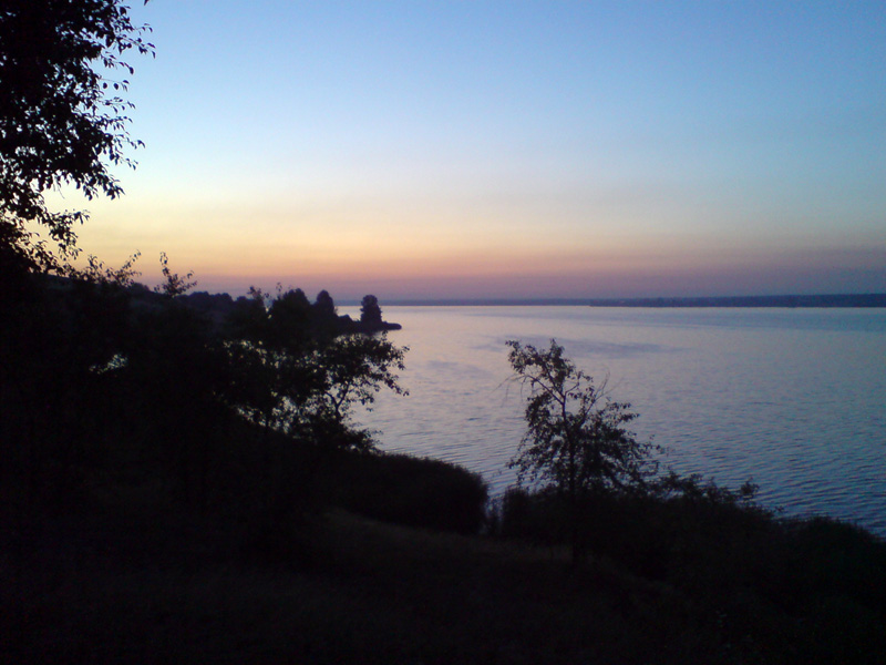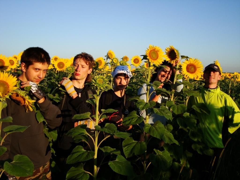 Приехали гонцы с едой, и все дружно начали жарить сосиски. Кто то жарил до корочки, кто то от голода проглатывал их полусырыми. Тем временем начало светать. Перед нами открывался чудесный вид! Все начали фотографировать. Затем рассосредоточились. Я полез на самую высокую горку, дабы полюбоваься пейзажем и запечатлил эти мгновения. Тем временем совсем рассвело и мы двинули в город, по дороге устрои набег на поле с пожсолнухами. Нет, не чтобы их собрать, а чтобы сфоткаться на фоне этой красоты. По городу быстро прохватили до левого берега, где и расстались. На одонометре 57км.