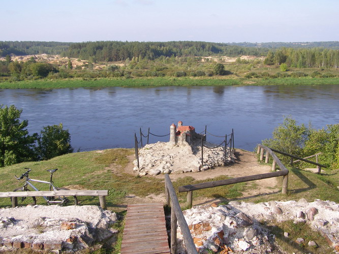 В последний день выглянуло солнце и я решил катнуть вверх по Даугаве к месту, где, как считают был основан Даугавпилс. Это сделали крестоносцы в 1275 году в 20 км выше по реке. Замок назывался Динабург. Современный Даугавпилс под названием Борисоглебск основал Иван Грозный . Таким образом угодливые историки прибавили городу три века. Хотя ИМХО это были два разных города. На месте замка Динабург на обрыве у Даугавы сейчас лежит небольшая кучка камней. Да еще сделан макет замка величиной со стол: