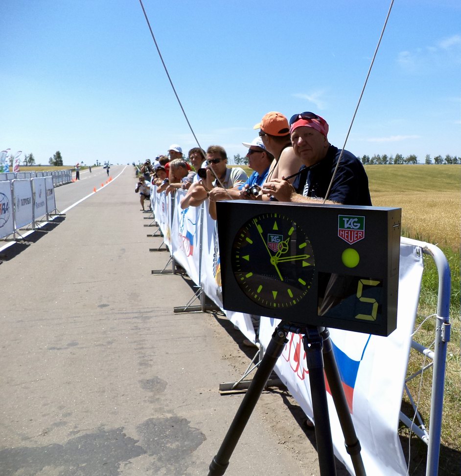 Это вот так они стартуют: Стартовая система есть, которая минуты отсчитывает и начинает пикать перед стартом, как у биатлонистов в телевизоре: Потом дядька флажок отводит, второй дядька велик отпускает, и поехал. Прикольно.