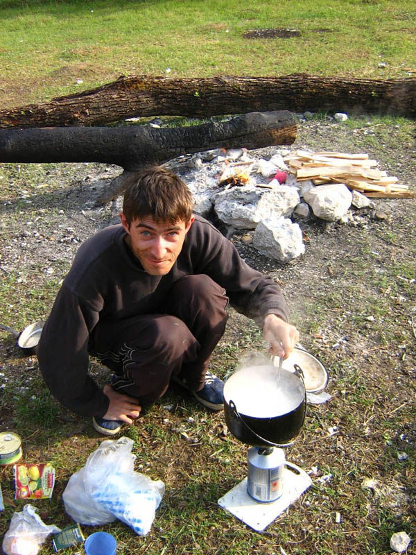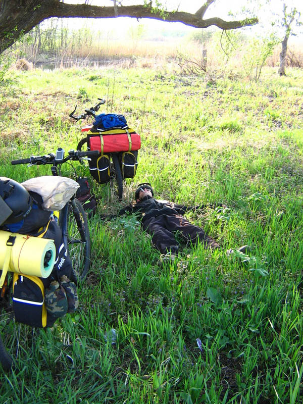 Стоит сделать еще одно лирическое отступление про Велотавров. Мало того, что эти чудо-богатыри покрывают 150 км в день без видимых проблем, так они еще и трижды ужинают. Куда они трамбуют столько еды, мне осталось неведомо, но надо думать это тоже непросто. Ваш покорный слуга отваливался после тарелки каши. Также мну научили как в полевых условиях с помощью геркулеса превратить в кашу суп, если с водой передоз и тушенка уже загружена.
