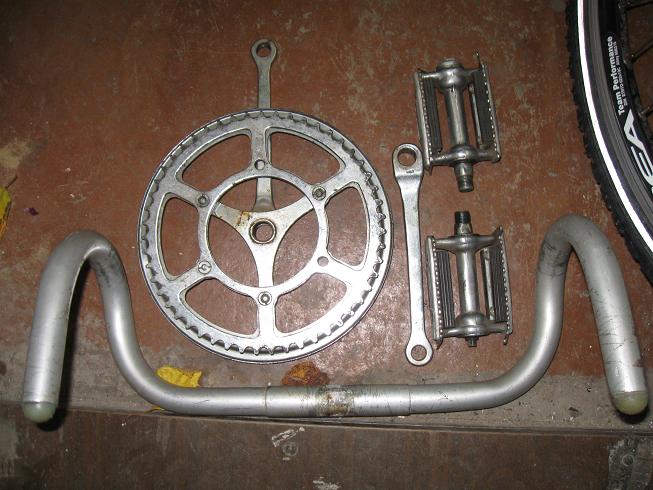 руль от стартона, шатуни и педали от спутника