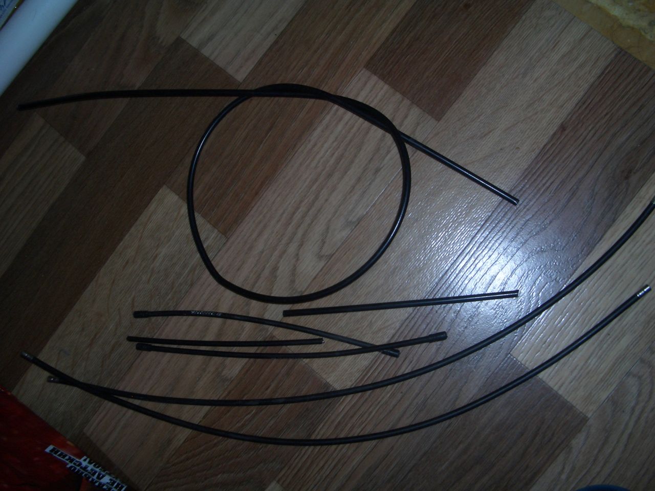 Какой-то модный тормозной трос в оплетке Gore Ride-On, почему-то разделенной на две части. Достался с ручкой, ручку использовал, его нет.