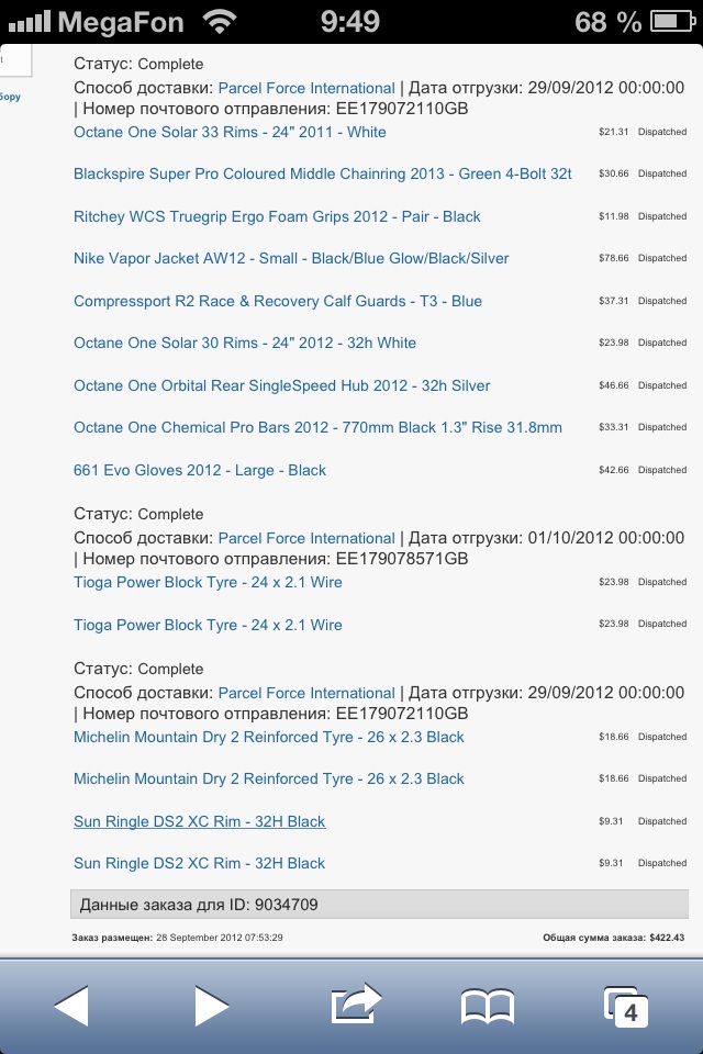 Что-то шины застряли.... Или отслеживание тупит?Windows писал(а):Эти шины ещё не отправили почему то.