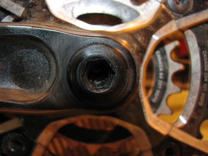 8. На всякий случай заново перепротянул бонки на системе, какие крепят звезды к шатуну, так как слышал, что они тоже иногда могут ослабнуть и слегка похрустывать. При их затяжке капал на резьбу немного фиксатора, синего.