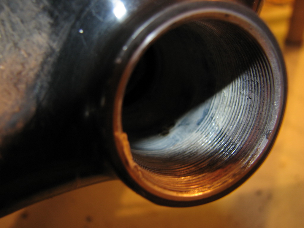 6. В моем случае смазка была грязной и требовала замены. Также 3-4 витка резьбы поменяли цвет, как на чашке, так и кареточной трубе рамы, покрывшись ржавчиной.