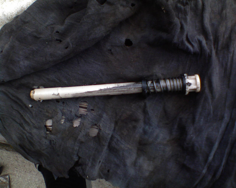 Для этого я использовал пленку от видеокассеты, наматывая ее сверху на углеткань туго, медленно, по мелкой спирали. Как и ожидалось, стал выходить воздух, из под пленки полезла лишняя смола. Вся конструкция ужималась, принимая форму пера. 7. Намотав пленку, убрав излишки смолы, оставил всю эту конструкцию «сохнуть». Теперь надо было дождаться, пока смола схватится и окаменеет.
