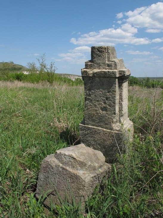 Остатки старого кладбища в с. Абросимовка. Надпись на памятнике "Икорский"