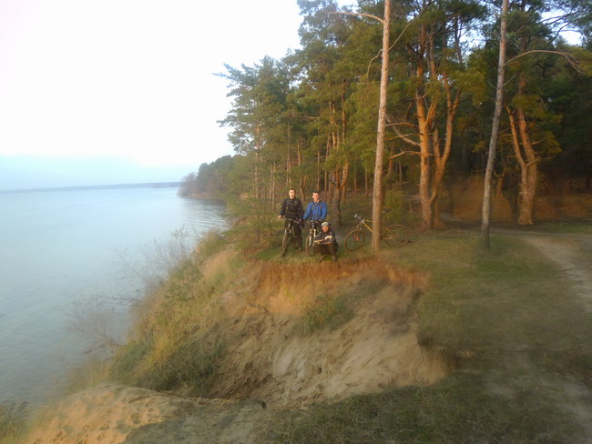 Ни юбилейную пятую, ни предыдущие четыре осенние поездки вокруг Врн Вдхрн. никоим образом нельзя отнести к матрасингу. Темп, конечно был не очень высокий, особенно во второй части. Но участок от Макс. Горького до водозабора за Белой Горой был достойный. Я здорово взмок и два раза упал. Олег Андреевич хоть и обзывался, по его мнению ругательным словом "туристы", делал это по своей механической привычке. Вчерашний дождь внес коррективы в управляемость велосипедов на сликах и с неполным комплектом тормозов. Руслан на синглспиде держался молодцом. По - моему он пал жертвой левобережных песков, для которых его узкая резина совсем не приспособлена. На старт к Петру1 явилось рекордное количество наездников - человек 15 наверное. Финишировали вчетвером. После Белой Горы договорились отстающих не ждать, чтобы засветло оказаться хотя бы в Масловке. Об этом было объявлено. Грязи, как таковой было не больше, а может и меньше, чем в прошлые годы. Вспомните как мы выглядели после переправы через Красную реку. А теперь там красуется мостик, и прилипучая красно - желтая грязь уже не покрывает пол - велосипеда. Сгоревший и упавший лес и перенос колючки отроженского водозабора заставил поискать дорогу. Пришлось полазить по прибрежной грязи. От Отрожки все пошло штатно. То есть пришлось повкручивать по прибрежным пескам. Потому что велосипед так устроен, что если не вкручивать он не едет. Дискуссия про велодорожку вокруг водяного хранилища пока даже не сподвигла левобережных комунальшиков постричь кусты вдоль бетонного парапета между Чернавским и ВОГРЕСовским мостами на левом берегу. Местами разросшийся лозняк просто сталкивает с парапета в воду. По ВОГРЕСовскому мосту переехали на правый берег и продолжали движение вчетвером. После лодочной пристани пески как пески. К фестивальной поляне подъем как подъем. Дальше аствальдт на плотину как плотину. Солнце начало окрашивать местность в закатный багрянец. Не преминули сфотографироваться в его лучах на взморье после Таврово.