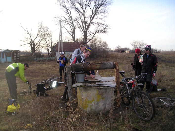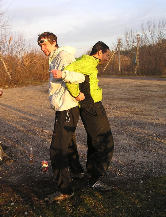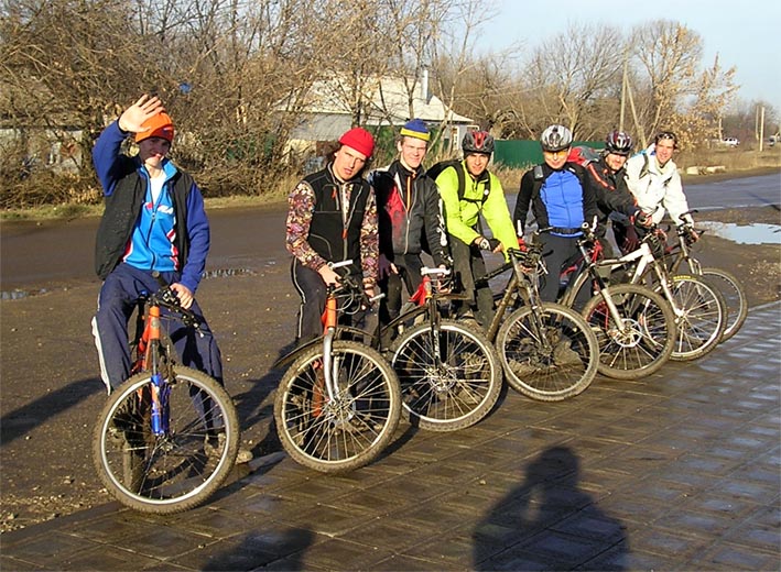 Без говномеса не обошлось. Для меня он начался сразу после выезда из дома в сторону Олимпика. Посмотрел в окно - солнышко светит. Сдуру снял оба крыла, оставил дома бахилы и поехал. А весь асфальт покрыт грязью от осевшего ночного тумана. К моменту моего появления у шлак баума я весь был покрыт крупицами и пядями родной, мля, земли. Проводить нас приехал СергНик, а вообще состав сегодня подобрался сильный. Три профессионала: Vovanbezbash, Inokoff и Сергей. Приехали 460, Radler и Nedjmdin, набирающий форму Zheny и я. Приехал San, но на окружной нас покинул. С самого начала было ясно, что в пойму лезть не надо. Поехали через мостик аэропортовский в Чертовицк, Староживотинное, Айдарово к Ступинскому мосту. Поймали говен перед аэропортом, потом в лесу перед Староживотинным. От Ступино в Нелжу шли пелетоном за 35, поражая мошью совместного педалирования сельчан. В Нелже, у церкви свернули в сторону Арзыбовки и Крутчика, куда по песчаным дорогам и приехали. В Крутчике, из за моих навигационных амбиций свернули к югу и тута же угодили в говны по обочинам полей. Километров семь их месили, пока не выехали в какую то Богом забытую Медовку, от которой, тем не менее, шло то, что сельчане гордо именуют асфальтом. Шло оно к трассе на Усмань. Доехав до Усманского южного переезда, свернули на Беляево, по асфальту, мимо аэродрома. После Беляево заехали в заповедник с целью добраться до Чистого озера. Я перепутал дороги, выехали на высоковольтную и до нужной тропинки пилили по влажному песку вдоль высоковольтной. Шли след в след. Я ехал пятым, и четверо передних накатывали для меня по песку сносную велотропинку. Там нас накрыла темнота. Дальше ехали в свете фонарей, с которыми сегодня дело обстояло получше, чем в прошлый раз. У Радлера, да, свет просто таки пробирал. Чистое озеро освободилось ото льда. От Графской ехали вдоль насыпи. В темноте показалось очень долго. Потом асфальт до пл. Орлово. Потом призовые говны в темноте от Орлово до Тресвятской. От Тресвятской с асфальта не слезали. Еще в Арзыбовке у меня заклинил трос переднего переключателя, поэтому пришлось все время ехать на средней звезде с изматывающим, порой каденсом. Возможности поддержать инициативу масс, склонных к внезапным рывкам за сороковник у меня не было. Измотанный каденсом пошел на нарушение спортивной этики и в одном из синицинских лабазов выпил пол - банки энергетика. Помогло, блин. В городе, на Ленинском проспекте начались гонки в ветровой тени ПАЗиков, для чего те подкарауливались на остановках. Было приятно смотреть на смелость и расторопность моих друзей, готовых на скорости за 50 увернуться от люка или ямы. Постепенно все разъехались восвояси. Непростые выдались 175 км. Очень понравилось. Особенно если учесть, что сегодня 6 декабря. Дед Мороз, ау! Заснул что ли.