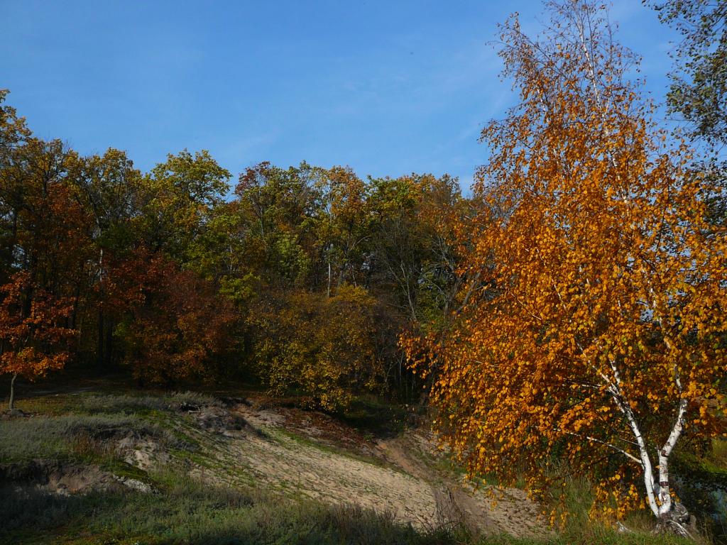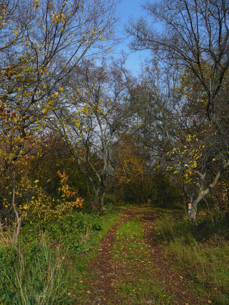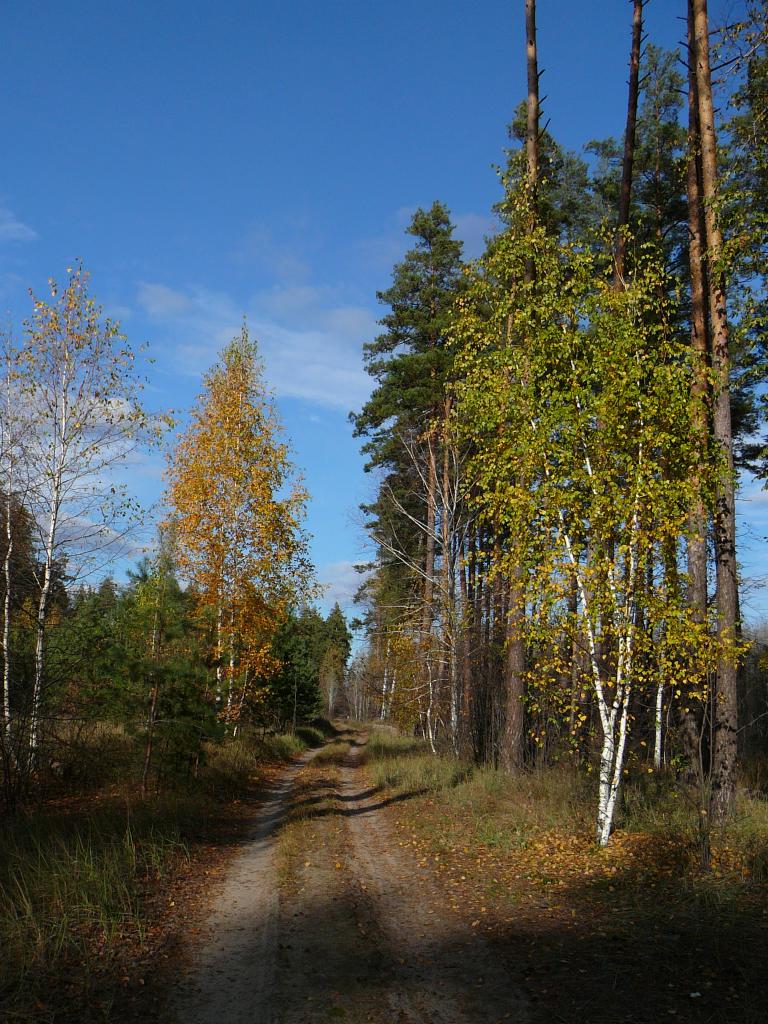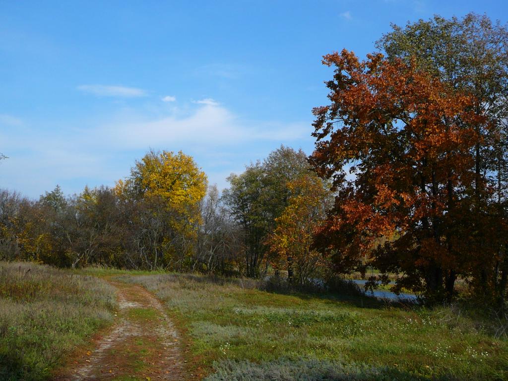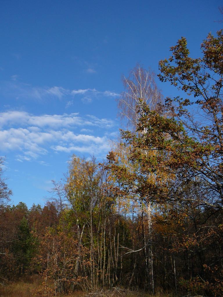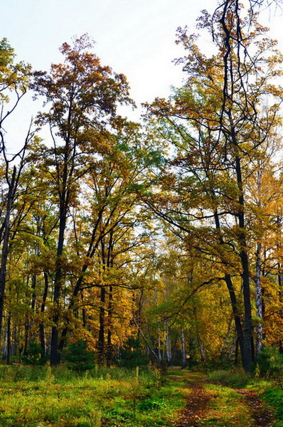 Некоторые деревья уже голые , а некоторые еще полностью зеленые