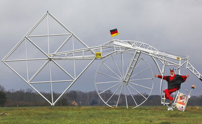 Этот "красный дьявол" известен, пожалуй, всем, кто хотя бы изредка посматривает протуры. Но он известен не только как маньяк, бегающий за велосипедистами с трезубцем, но и как создатель самого большого велосипеда в мире.