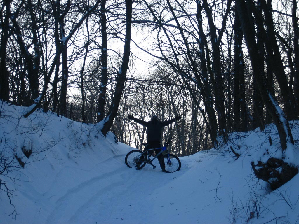 пока шел по водохранке (и ноги, и руки, согрелось все). Залезли на гору, и я уж было обрадовался, мол, щас поедем на Олимпик, нифига, Стас решил, что рано еще....
