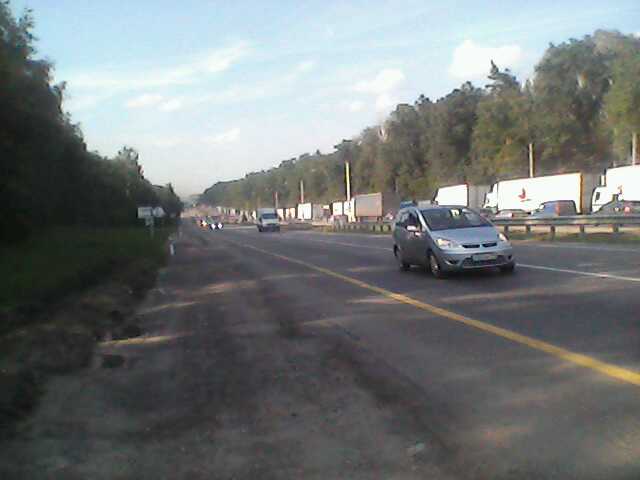Фуры с машинами в 3-4 ряда идут-стоят, а я между ними в шашечки нарезаю, по всей ширине полосы, от обочины до обочины, и по обочинам тоже. В тот момент недо съемок было, потому как едешь по узенькому проходу промеж фур, двери то справа, то слева открывают постоянно. В общем, экстрим, ток рулить успевай. Полчаса времени на это угробил.