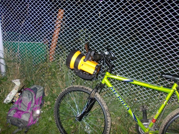 фонарь, вот такой: http://dx.com/p/trustfire-tr-3t6-xm-l-t ... 720?item=3 вставлен в обычное крепление и примотан изолентой.