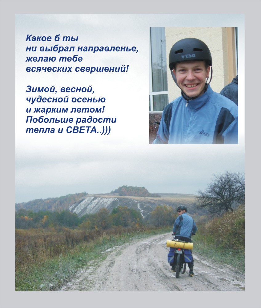 Чтож именинники, настала моя очередь сказать пару слов. С днем рождения вас! Желаю в новом сезоне (это я про весну)))))))) обрести еще целую кучу таких же веселых и целеустремленных друзей, еще моря позитивных эмоций, ночных романтических покатушек, сильных выносливых ног (!) и верного прочного велосипеда! )))))))))))))))))))