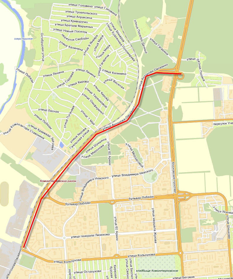 1) Юго-Западный – Тепличный. Наверняка многие жители Ю.З. ездили бы на велосипедах погулять к Дону, но дорога до Тепличного очень узкая и загруженная автотранспортом – ехать там, значит все время рисковать своей жизнью. Отступите на метр от дороги, сделайте 2-метровую асфальтовую велодорожку идущую паралельно автодороге. 2) Западная часть Северного – Олимпик. Те кто живут рядом с Московским проспектом могут воспользоваться тропинкой в посадке / лесу. Те кто живут ближе к Автоново-Овсиенко должны до туда еще добраться или пользуются окружной. Сейчас как раз идет ремонт окружной. Опять таки – отсутпите метр от основной проезжей части или хотябы сразу за бордюром, сделайте 2-метровую асфальтированную велодорожку. На Московском проспекте от обл больницы до Олимпика делать ничего не нужно – там и в лесу тропинка есть. 3) Березовая Роща – Ломоносова. Будет актуальна для местных жителей которые хотят ездить в места расположенные по этому маршруту. Допустим человек из Березовой Рощи решил съездить в санаторий Горького. Тоже, это не должна быть полоса существующей дороги отделенная белой краской – это никак не защитит велосипедиста от несущегося 100 км/час владельца девятки; велодорожка должна быть отдельной (новой!) полосой асфальта отделенной как минимум бордюром.