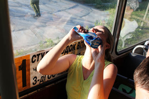 В этот день к трапу подали новую электричку в которой мы не могли не понажимать и не подергать за механизмы управления, которые походу дела создавали антураж и не работали, в остальном все осталось неизменным: бабки которые стараются в нужный момент попасть в центр кадра, занять место под неустойчиво нависающей байдаркой, женщины с орущими детьми которые вбегают и тусуются в тамбуре во время нашей выгрузки, на стоянке, которая длится ровно столько чтобы двери успели открыться, но даже это, люди в виде хотдогов, в своих рюкзаках преодолели, встали и пошли...
