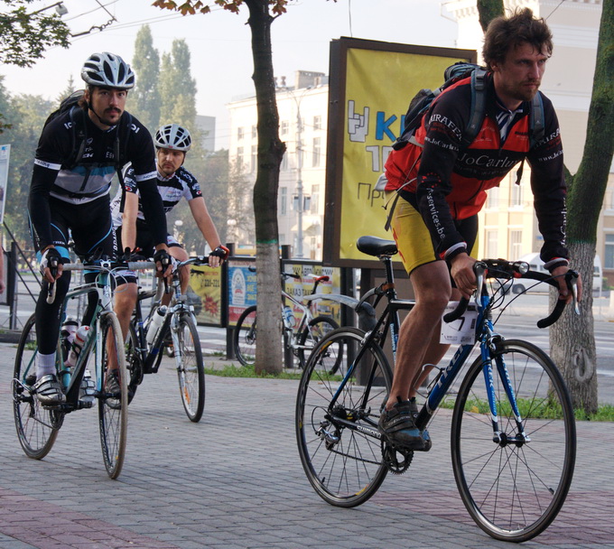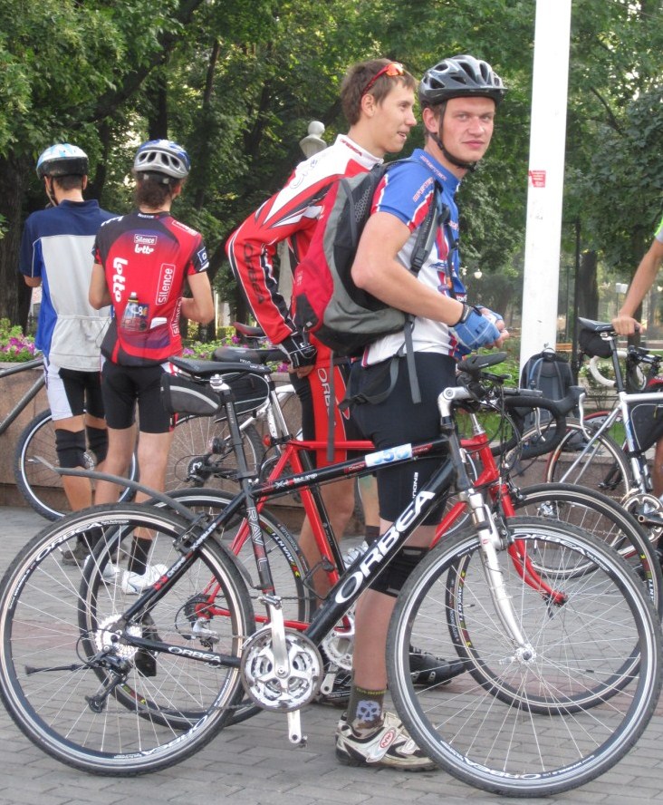 проехалось хорошо. первые 30 км ехал в группе с Иноковым и Безбашем, потом начались подъемы и я на танке начал отваливаться. спустя 5 км меня догнал Велогонщик, с ним-то и ехали мы большую часть маршрута, вплоть до шалманов в обратном направлении, где предпочел отведать местной кухни. там я увидел кампанию лосей, которые активно отдыхали под борщ и рис, повествуя друг другу свои фантазии. я довольно скоро поел, и успел стартануть вместе с ними. через 30 км стал замечать, что сил не хватает, но все любезно сбавили темп и дождались меня. на выезде с платного участка мы встретили Zheny, который менял камеру. далее отправились вместе. через какое-то время мы остановились на заправке для финального пит-стопа. около трц "град" прокололся Иноков, и просил его не ждать.от олимпика уже мало хотелось ехать, но тут ничего не поделаешь. мероприятие понравилось, только на мтб его лучше не ехать.