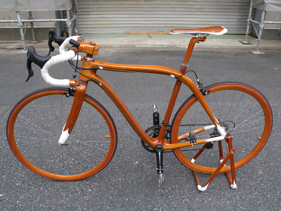 "Судомонтажник в девятом поколении японец Суесиро Сано (Sueshiro Sano) сделал в 2008 году свой первый деревянный велосипед. Все его части: каркас, вилка, седло, руль, педали - из красного дерева. По мнению Суесиро Сано деревянный каркас обладает совершенно особыми свойствами в отличие от металлического."