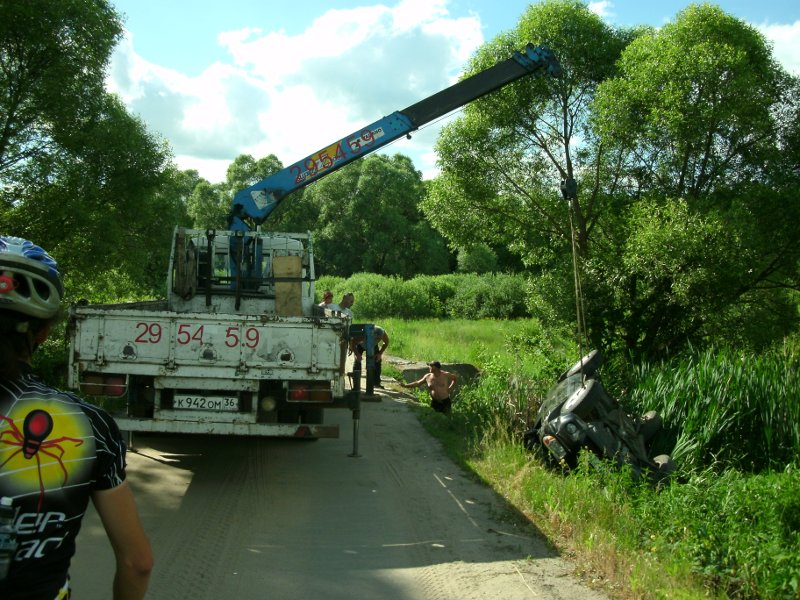 А может его ветром опрокинуло - совсем не исключаю такой вариант. Кстати машину вынули, ибо на обратном пути её не было уже. Первый перекус забабахали, если не ошибаюсь в новоживотиновом. Второй был само собой на конечной, в кривоборье.