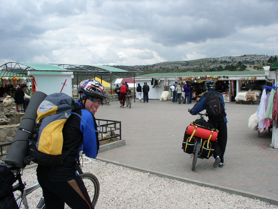 Вкратце маршрут поездки можно описать как Симферополь - Судак - Ялта - Бахчисарай - Симферополь. Поездка была вполне матрассная, за все время проехали по моему компу 350 км. Можно сказать что если вам по силам проехать например в субботу 100 км, а на следующий день вас не напряжет проехать еще 70, то значит такой маршрут по Крыму вполне для вас комфортен. Конечно не стоит забывать что возить груз на багажнике проще чем на спине, и вообще нужно внимательно относиться к тому чтобы не брать лишнего веса, но и взять все что действительно будет восстребованно. На майские праздники в Крыму бывает достаточно холодно (у нас несколько дней ночью температура опускалась до +4 С) и бывают дожди, так что нужна теплая одежда и какие то способы уберечься от дожда -- накидки, тенты из целофана, непромокаемая одежда, вариантов много.