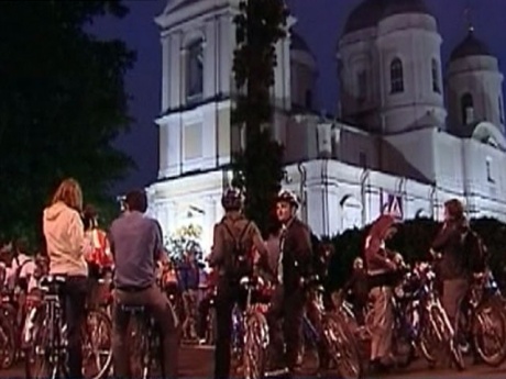 На улицы Санкт-Петербурга этой ночью выехали тысячи велосипедистов. Речь не идет о спортивном мероприятии. В Северной столице прошла архитектурная велоночь. Это не просто прогулка с осмотром достопримечательностей города, а настоящая экскурсия. Вот только гида приходится слушать по радио.