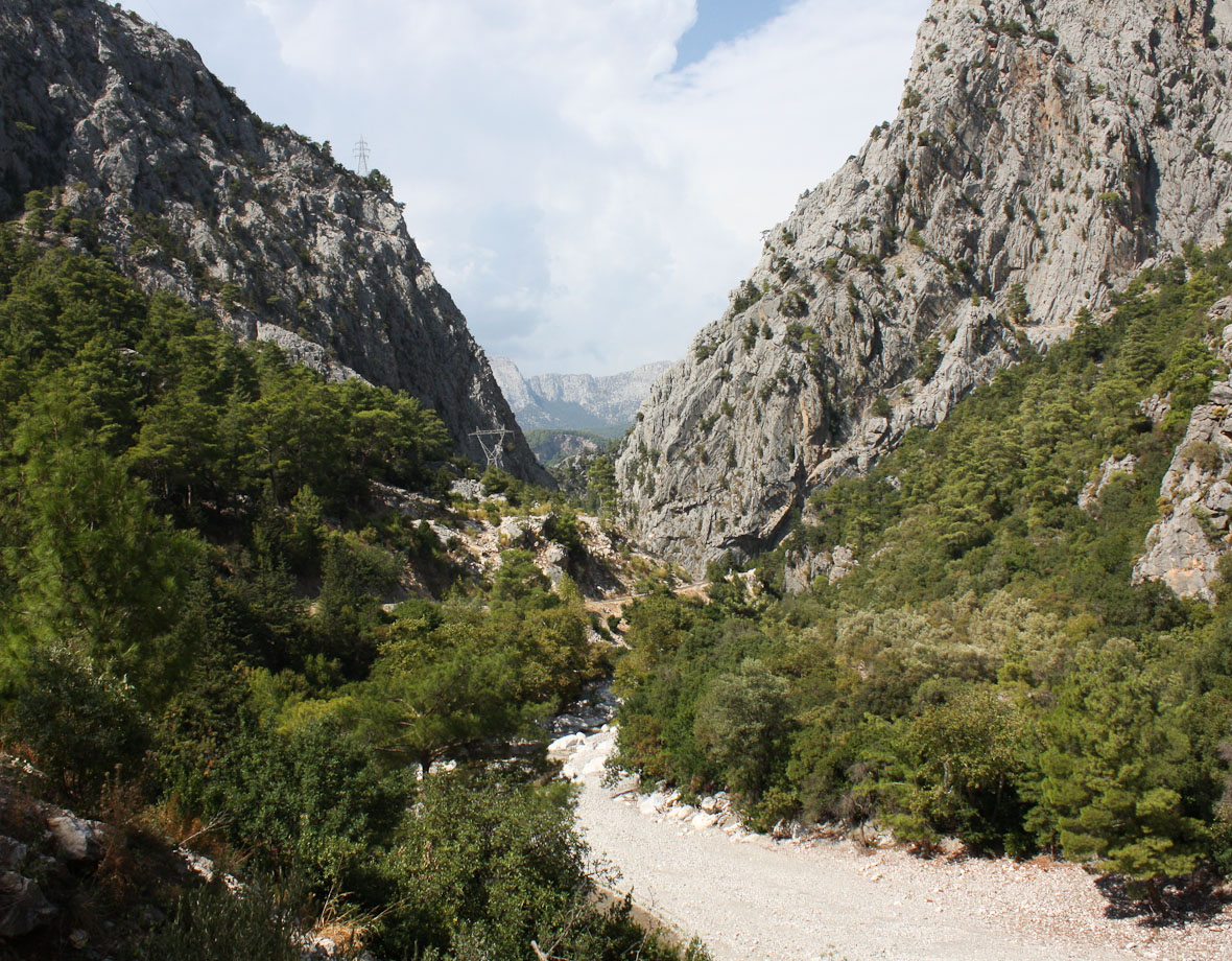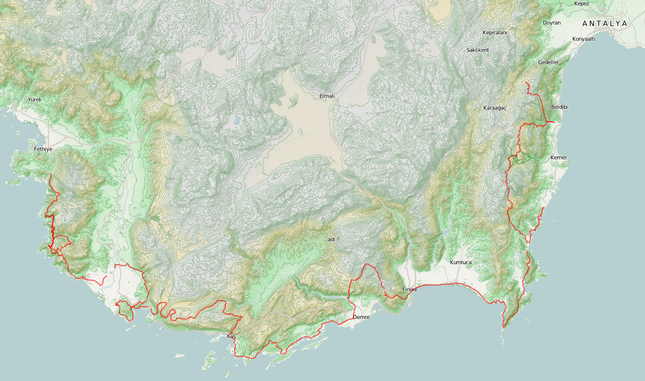 4. Летим в Анталию. Не забывайте что в ручной клади нельзя проносить жидкости, даже маленькие ножи и прочее чем можно ткнуть и порезать; в рюкзаке который сдаете в багаж могут быть и жидкость и ножи, но не холодное оружие – не надо брать свой любимый кинжал из дамасской стали. Для пересечения границы Турции достаточно загранпаспорта, виз или какой то оплаты сейчас не требуется. 5. Аэропорт Анталии. Аэропорт имеет 3 терминала. Возле Domestic terminal (местные авиаперелеты) имеется остановка городского автобуса номер 600, ездит каждые пол часа. Если у вас был прямой рейс то вы прилетите в Terminal 1 или Terminal 2 -- Terminal 1 рядом с Domestic terminal, от Terminal 2 нужно идти на север полтора километра до Domestic terminal. Валюта Турции – турецкие лиры, курс сейчас примерно 1 TL = 18 руб. В аэропорту можно снять наличность в банкомате или обменять в обменном пункте (много не меняйте – курс не выгодный). Садимся в автобус, проезд стоил кажется 3.5 TL. Автобус едет через всю Анталию (а это город с населением в 1.5 миллиона человек) до центрального автовокзала (по-турецки Otogar). Если вы хотите начать маршрут с самого начала то увидев в окно большую стеклянную пирамиду попросите выйти (или еще ключевое слово для водителя – Migros), если хотите начать свой поход не с начала – то езжайте на автовокзал.