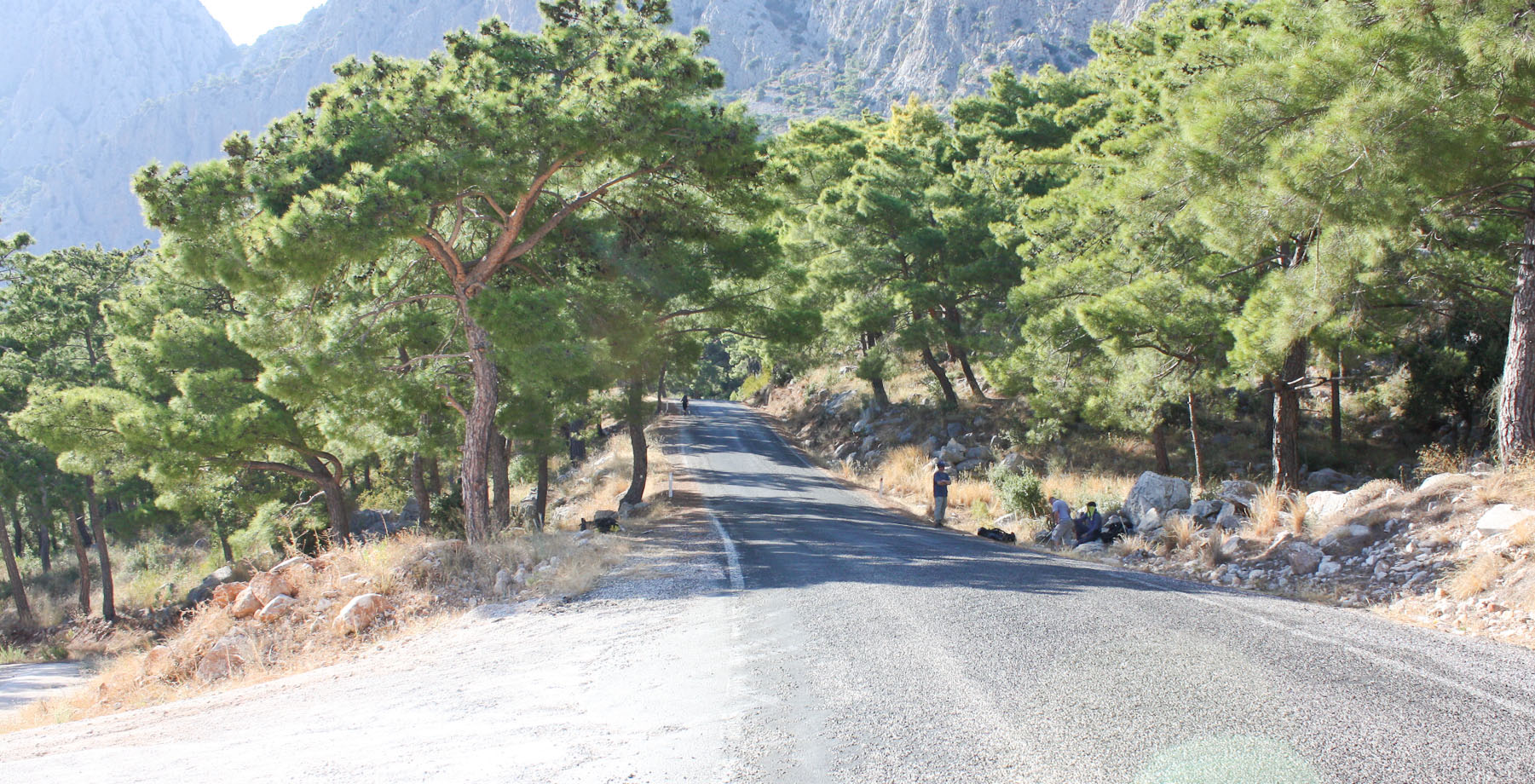 6. Едем к началу маршрута. Заходим в супермаркет Migros – покупаем еду на 3-4 дня, на нижнем этаже банкоматы и обменный пункт (берут комиссию 2% от суммы обмена), переходим на другую сторону улицы Attaturk Bulvari и ждем какой-нибудь городской автобус с маршрутом до Hurma (Hurmakoy – район на юго-западной окраине Анталии). Выходим из автобуса и ищем дорогу которая уходит вверх в горы к деревне Hisarcandir. Идем и наслаждаемся видами.