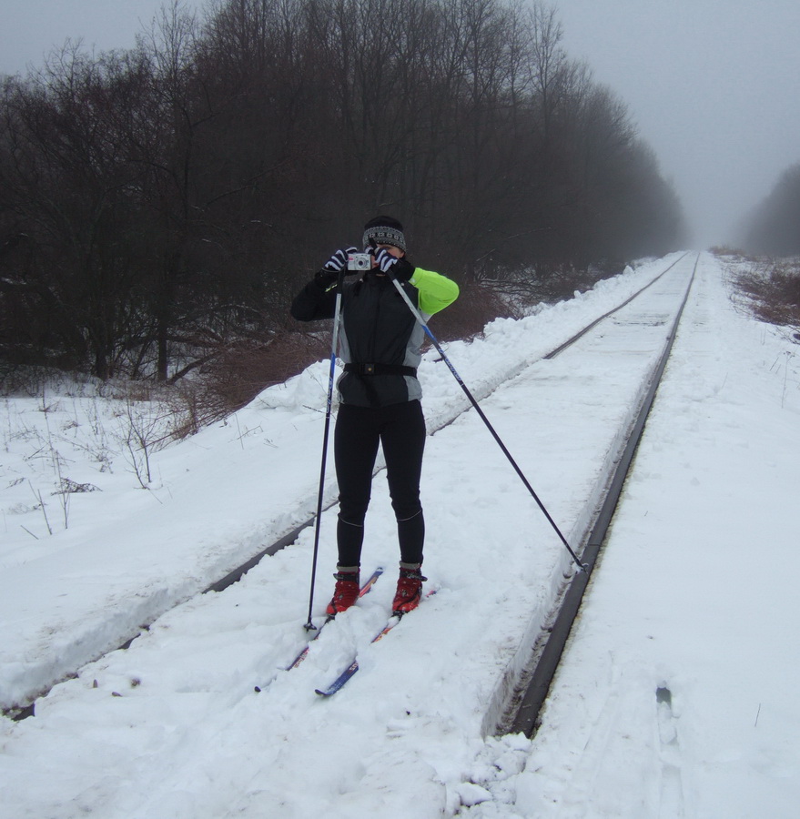 Мало того, что снег мокрый и рыхлый, так еще и шпалы поперек дороги лежат. Зато понял теперь, что в вилку еще ластика запихать надобно, а то слишком мягкой оказалась. Я вот забыл спросить еще, по тому пути (рельсам) по каким мы пилили, там что-нить вообще ходит еще, или всё..., отъездились? А то пока ехал между рельсами, все прислушивался, а не загудит ли за спиной какой-нить тепловозный или электрический шайтан?