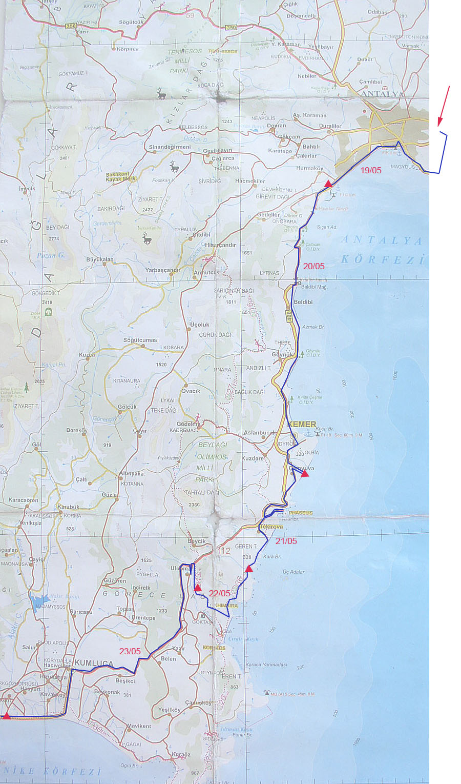 21 мая: Camyuva – Phaselis – Tekirova – бухта на Lycian Way