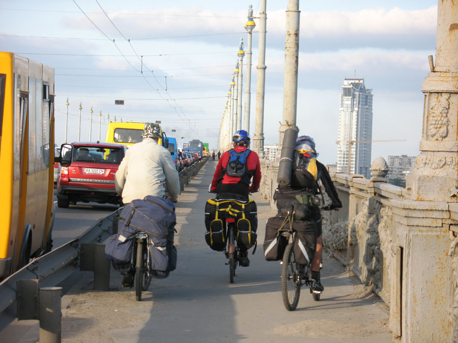 Так, порадовавшись солнышку, приготовив кашу рисовую с вареной сгущенкой, нехотя все встали, поели и заехав попрощаться с Ромой, с полной амуницией отправились смотреть Киев и потихоньку двигаться в сторону Борисполя (аэропорт). Сразу скажу, что Киев на веле мне очень понравился. Вежливые водители, народа не очень много, зеленый, красивый город с очень интересным рельефом, в общем, класс.