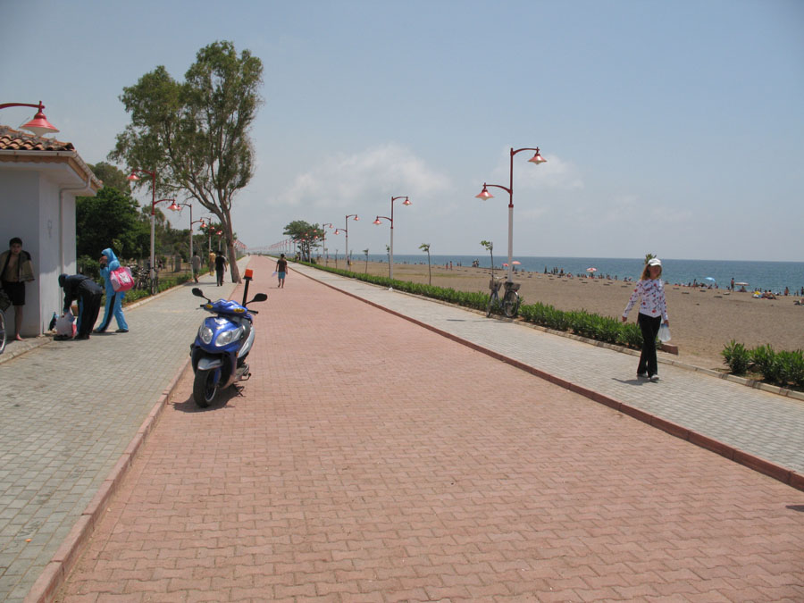 Seliff: Утром подъем в 08.00 собираемся довольно быстро, т.к. еду готовить не надо, перекусываем хлебом с сыром и отправляемся дальше. По пути Леху манит указатель с полуобнаженными женщинами (термальный источник) заезжаем, ничего интересного, катим дальше. В небольшой деревне в мужика на дороге покупаем 8 кг. апельсинов. Проехав метров 500 набираем еще столько же, нахаляву. Находим магазин, покупаем хлеба и молока и сыра, едим мороженное и катим дальше, выезжаем на магистраль Р400 и в самое пекло вкручиваем по оживленной трассе около часа. До моря остается километров 20, заезжаем в деревушку под названием Gucova, катим традиционно в супермаркет, покупаем йогурт, молоко, сыр и хлеб и едем искать место, где покушать, заезжаем на охраняемый пляж, где находим каменные столики и скамеечки и решаем и решаем покушать здесь. Тут же к нам подходит турок в зеленой рубашке и пытается разговаривать с нами по-турецки, о чем, мы, естественно, не понимаем.