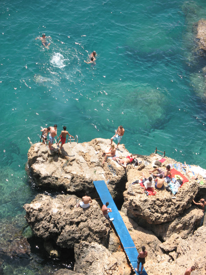 Жара в этот день была снова неимоверная – на небе не тучки – это, плюс вчерашняя усталость сказалось на нашей мотивации ехать (по большей части жара). Так что мы без зазрения совести провели весь день у моря. Оно в этом месте было достаточно прохладное – но это был такой кайф! как после бани в холодный бассейн.
