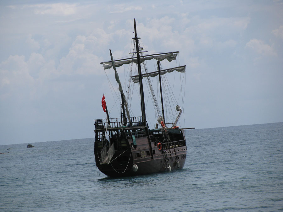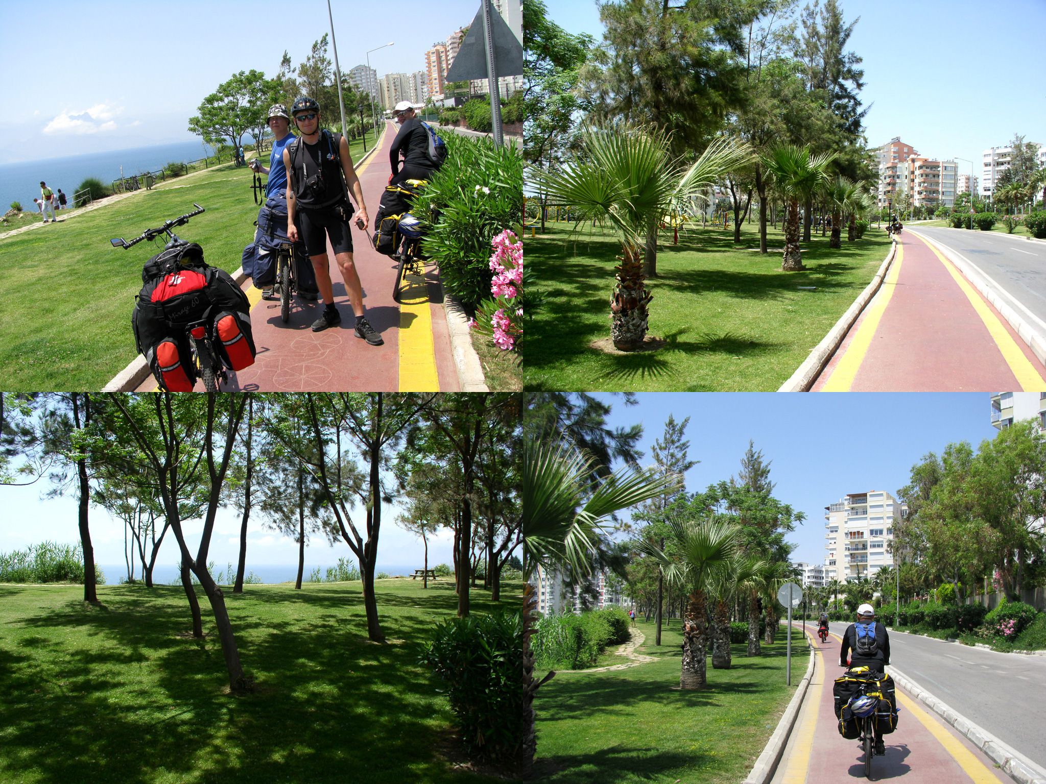 Доехав до Кемера нам уже стали кричать на чистом русском “Привет, пацаны!”. Бывшие жители Дагестана и Азербайджана несказанно рады были предложить свои услуги в широком спектре туристического бизнеса. Стандартный вопрос “Вы прям из России на великах?”- стандартный ответ “нет, мы еще по Черному морю на байдарках”. Помня недавнюю мечту, Сергея (Seliff) мы посоветовали ему купить сланцы на развалах “все по 5лир”. Сложность была только в том, чтобы найти 2ой такой же сланец, не только по цвету, но и по размеру. По улицам бродили опытные белорусские туристы и объясняли, где нас могут развести хитрые турки. Запахло Родиной и братской взаимопомощью. Кто-то даже поведал нам заветную тайну, где дешево и вкусно поесть. Но найти такие места без проводника в тот момент оказалось невозможно.