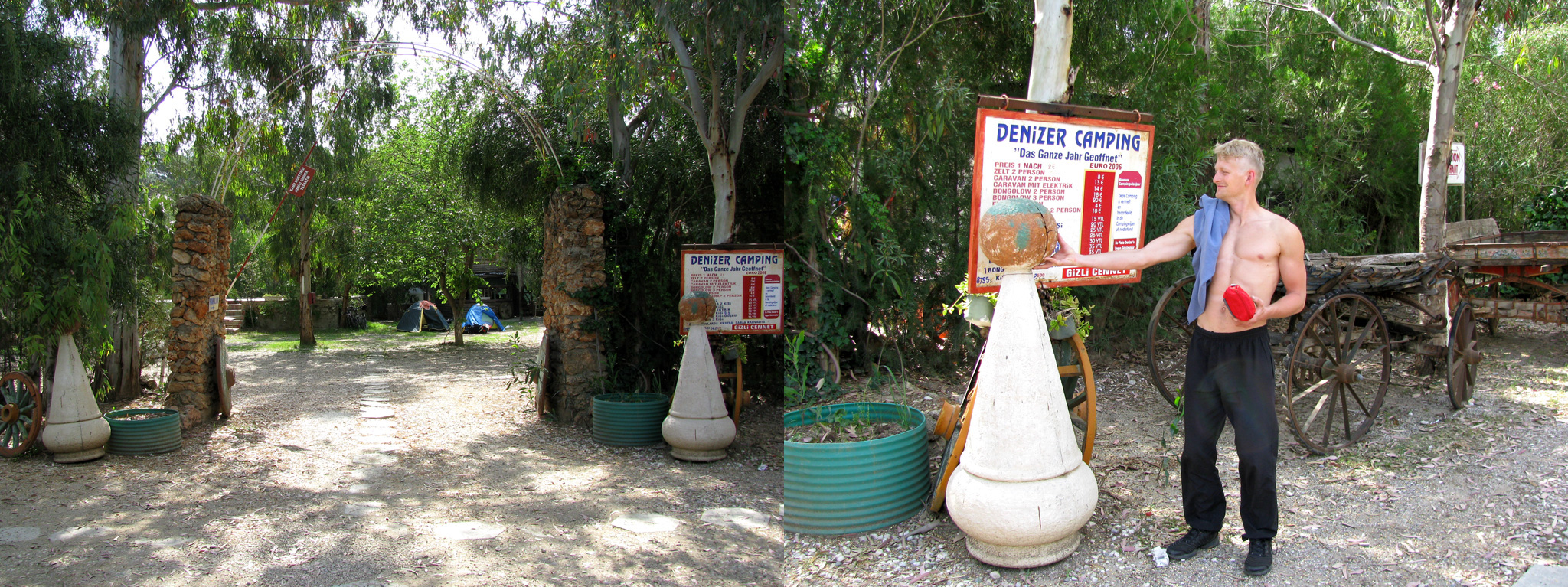Поговорив с хозяином, выяснил, что он хочет по 10 лир с человека, торговаться не стал, но сказал, что дальше, через километр, по дороге на Фетхие, есть кемпинг Олимпос.