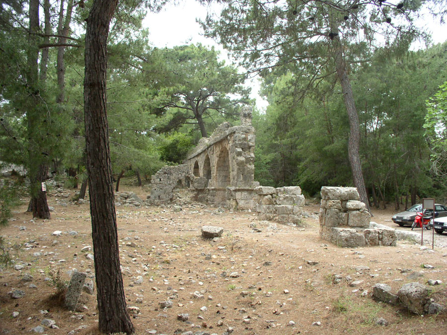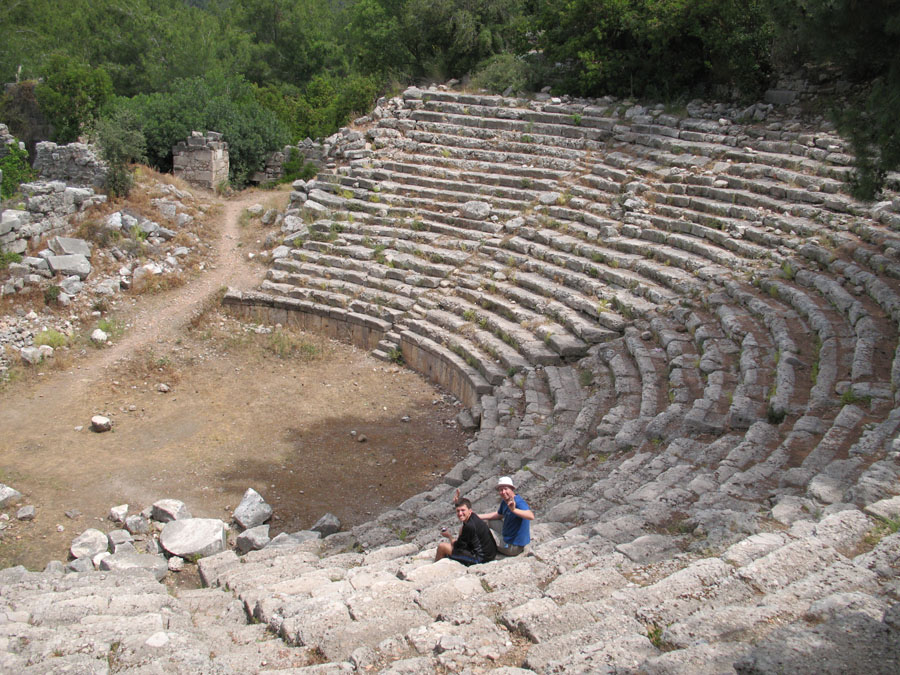 Распечатанный кусок путиводителя Lonely Planet http://www.lonelyplanet.com/ по региону Турции Western Mediterranean сообщал нам что через 12 км после Кемера мы можем посетить греческий город Phaselis основанный в 334 году до нашей эры. Заехали. Phaselis стоил своих 8 лир – хорошее местечко с развалинами, виадуком, амфитеатром, красивыми бухточками где можно поплавать (правда в одной из бухт под водой есть камни оставшиеся от древнего мола закрывавшего вход в бухту – плавать нужно аккуратно – не махать ногами