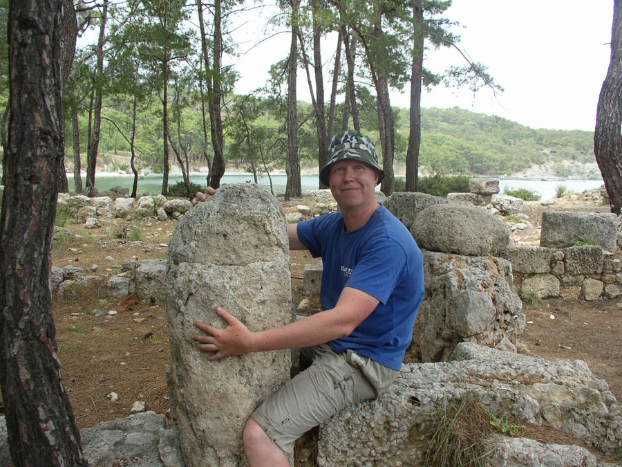 Seliff: Встаем, как только солнце взошло, т.к. в палатке становится очень жарко. Готовим кашу с консервами, кушаем и в 10.30 по местному времени выдвигаемся. Следующий пункт Дальян с какими-то развалинами. Доезжаем до речки и переправляемся на лодке за 25 лир со всех (сначала было 40 лир) на другой берег. Там Вовка, Сергей и Леха за 8 лир с человека идут смотреть очередные развалины, я остаюсь в теньке и пишу отчет. Развалины называются Kaunos. После них выдвигаемся дальше через небольшие населенные пункты в сторону Marmarisa. Ползем в гору, затем крутой спуск (в общем-то вся дорога и состоит из таких отрезков) и мы находим отворотку налево (грунтовку), проезжаем мимо ульев вдоль дороги и находим отличное место, чуть выше, как раз для пары палаток. Готовим рожки с консервами на горелке, едим и заваливаемся спать до утра.