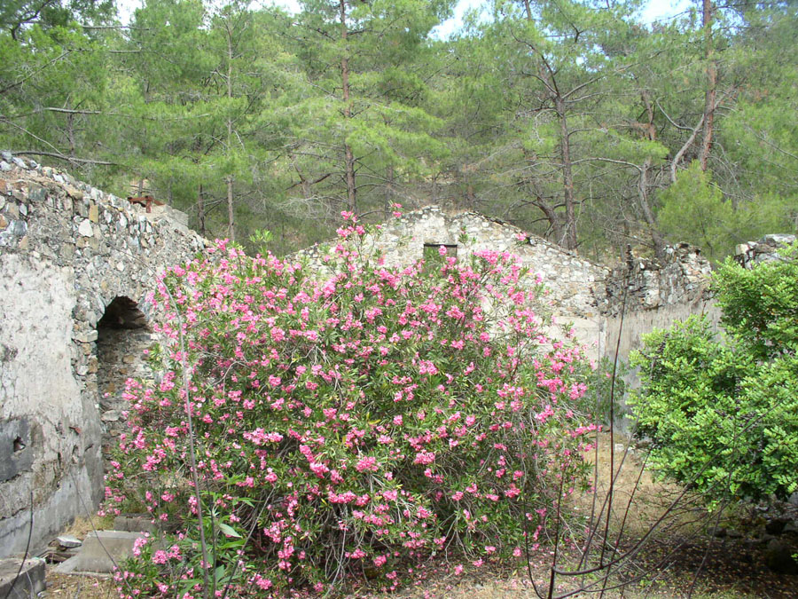 -- снова вышли на метки – еще прошлись – до заливчика так и не дошли зато нашли древние развалины, совсем заброшенные – так их много в Турции что до некоторых совсем дела нет. С этого дня Турция начала показывать свой настоящий нрав – на небе не облачка, жара жесткая, новый велобог редкий в Воронеже но более известный в южных странах – Пекло вступил в свои права. Вообщем вернулись обратно к месту где оставили Вову и Сергея, пообедали. Пока ели пришла та самая бабка и стала нам про свою жизнь рассказывать на чистом турецком – мы ее слушали и Сергей иногда поддакивал ей по турецки